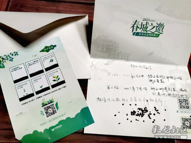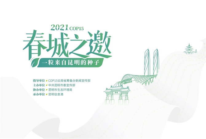 “一粒来自昆明的种子”活动盲盒2021年10月11日-24日,联合国《生物多样性公约》第十五次缔约方大会(CBD COP15)将在云南.昆明召开,主题是“生态文明:共建地球生命共同体”。大会落地中国举办是国际社会对中国生物多样性保护成就的认可,也是展现生物多样性保护和生态文明建设的中国智慧。为让广大网民深入了解COP15,点燃公众关心、支持、参与生物多样性大会的热情。由COP15云南省筹备办新闻宣传部指导,中共昆明市委宣传部主办,昆明市生态环境局协办,昆明信息港承办的“2021COP15春城之邀——一粒来自昆明的种子”活动于6月5日启动,并将分批次向全国30个城市推广。