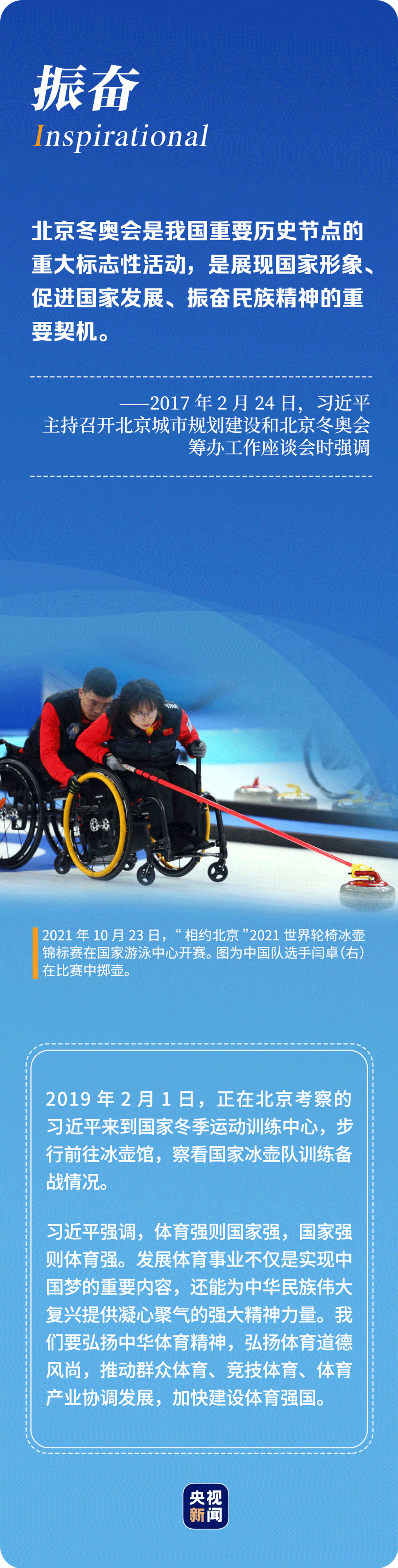 “办好北京冬奥会、冬残奥会是党和国家的一件大事,是我们对国际社会的庄严承诺,做好北京冬奥会、冬残奥会筹办工作使命光荣、意义重大。”6年多来,习近平总书记始终惦记着冬奥会筹办进展,多次实地考察、主持召开重要会议部署推进冬奥筹办工作。
