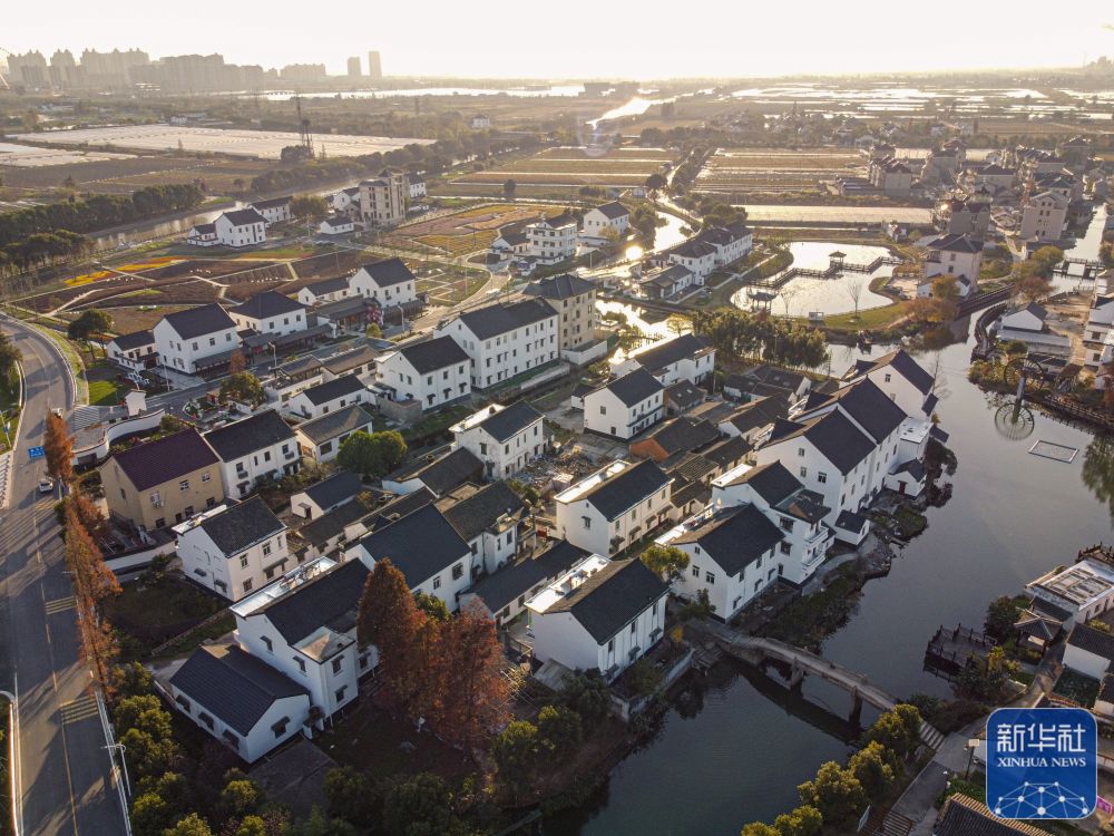 浙江省嘉兴市秀洲区油车港镇胜丰村景色( 2020年12月15日摄,无人机照片)。 新华社记者 江汉 摄