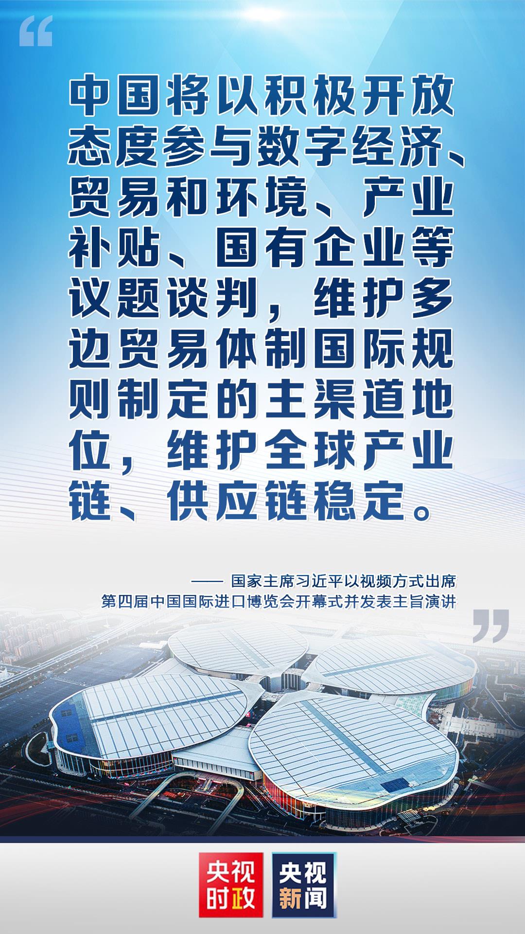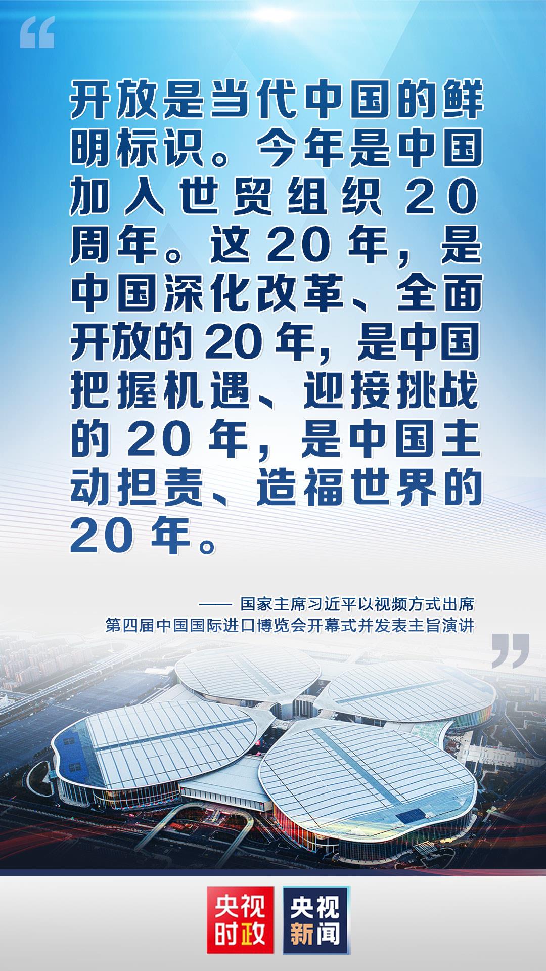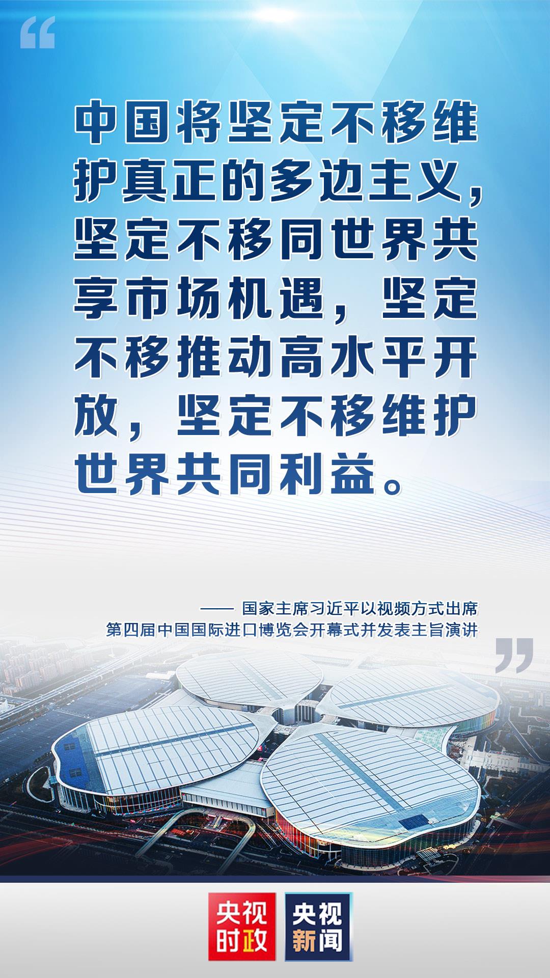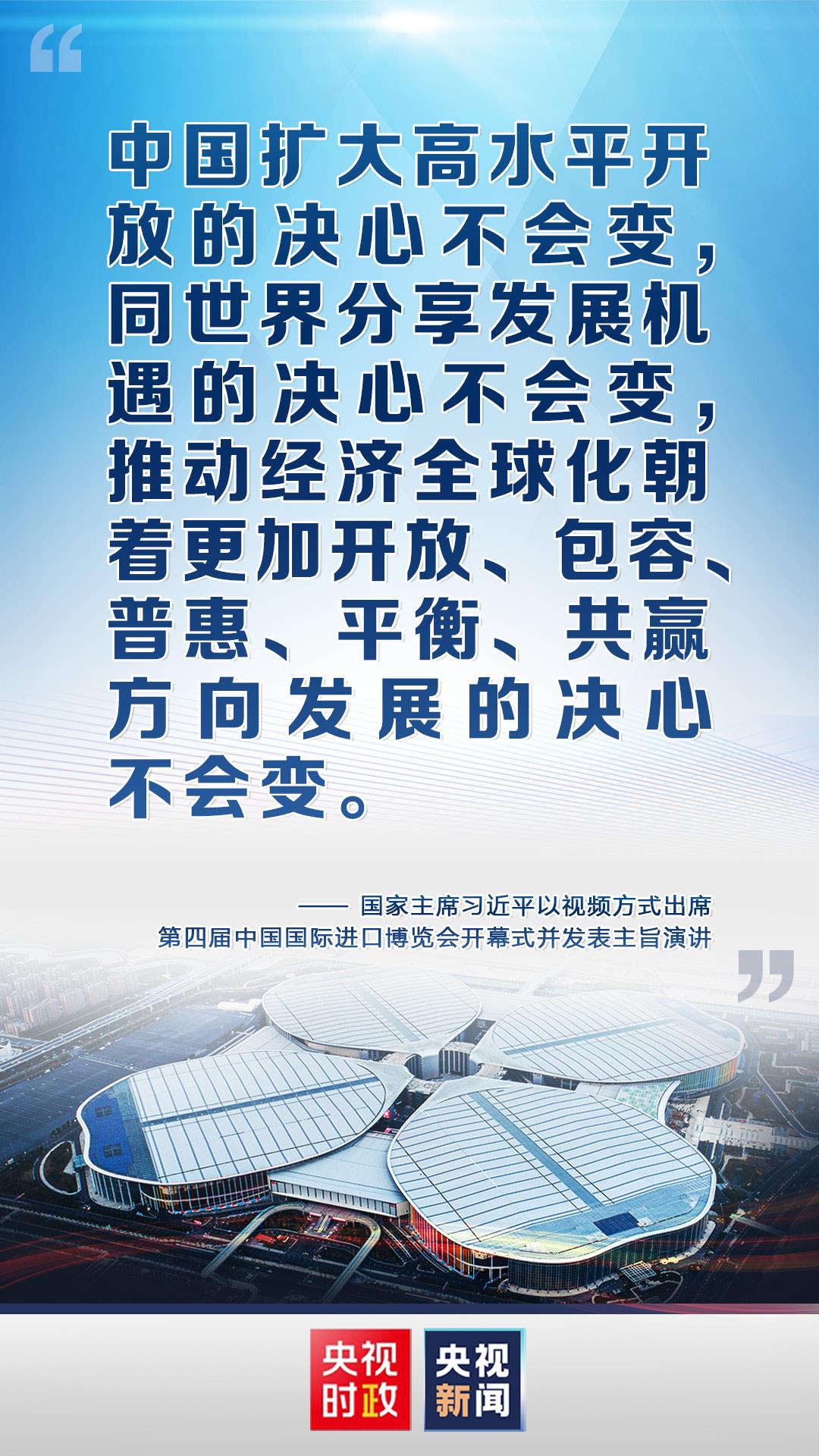 金句来了!习近平在第四届中国国际进口博览会开幕式上发表主旨演讲 编辑:高方勇 来源:央视新闻客户端 浏览次数: 次 发布时间:2021-11-05 09:58:32 【字体:小 大】 国家主席习近平4日以视频方式出席第四届中国国际进口博览会开幕式并发表主旨演讲。责任编辑:郭廷轩 扫一扫在手机打开当前页 【打印正文】 相关信息 上一篇:时政新闻眼丨从“五个一”读懂习近平在进博会开幕式上的主旨演讲 [ 2021-11-05 ] 下一篇:【央视快评】让开放的春风温暖世界 [ 2021-11-05 ]