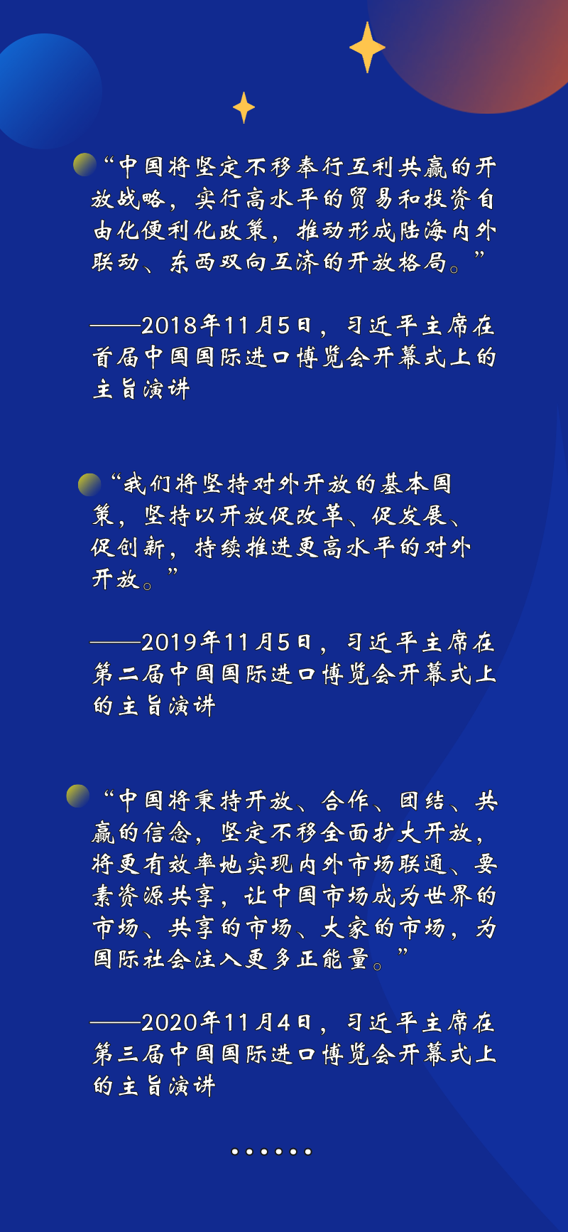 “持续放宽市场准入”“继续优化营商环境”“深化双边、多边、区域合作”……习近平主席在进博会上宣布中国扩大开放的一系列重大举措。