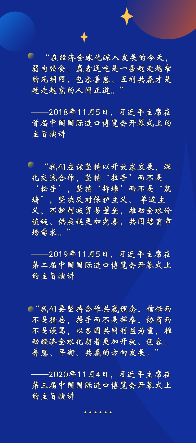 在前三届进博会开幕式上的主旨演讲中,“合作”“共赢”是不变的高频词——