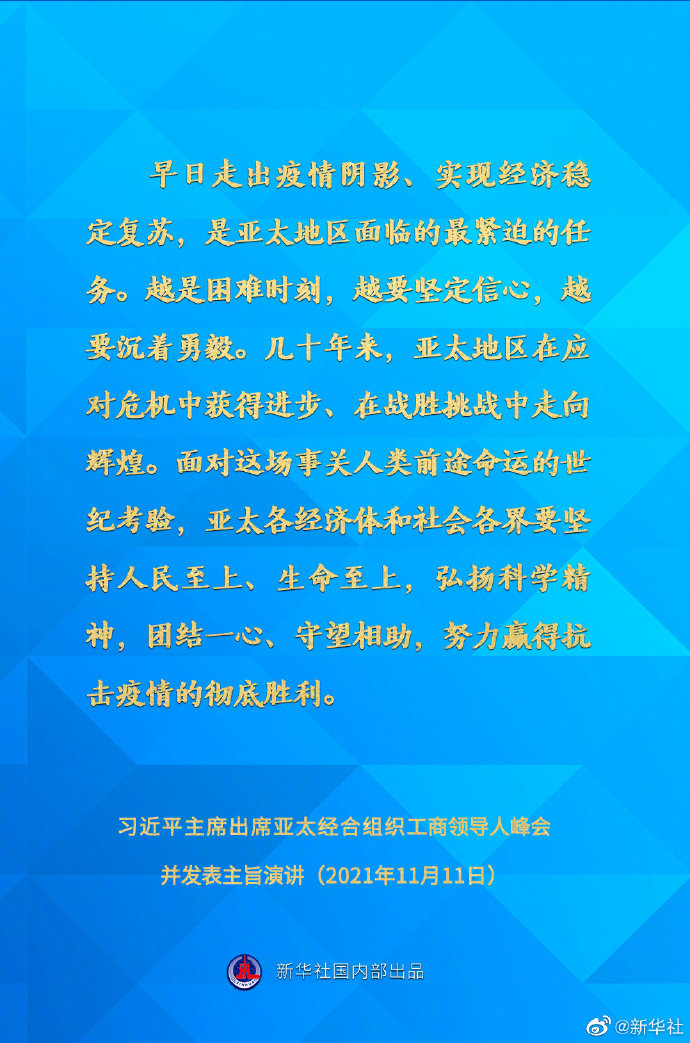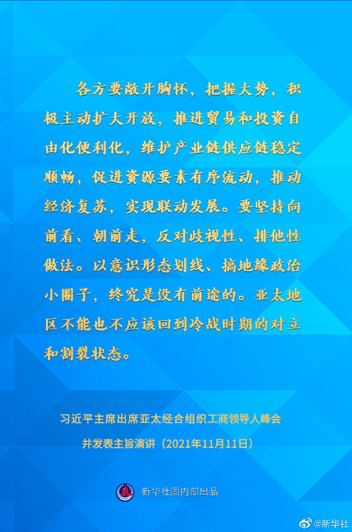 习近平在亚太经合组织工商领导人峰会上的主旨演讲要点速览 编辑:高方勇 来源:新华社微博 浏览次数: 次 发布时间:2021-11-11 14:51:55 【字体:小 大】 11月11日,国家主席习近平应邀在北京以视频方式向亚太经合组织工商领导人峰会发表主旨演讲。一起来看要点↓ 扫一扫在手机打开当前页 【打印正文】 相关信息 上一篇:焦点访谈:领航 百年征程 永葆初心 [ 2021-11-11 ] 下一篇:【央视快评】坚定朝着构建亚太命运共同体目标迈进 [ 2021-11-11 ]
