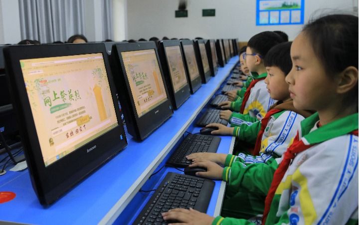 2019年4月3日,湖南吉首大学师范学院附属小学的学生们参加网上祭英烈活动。新华社发(彭彪 摄)