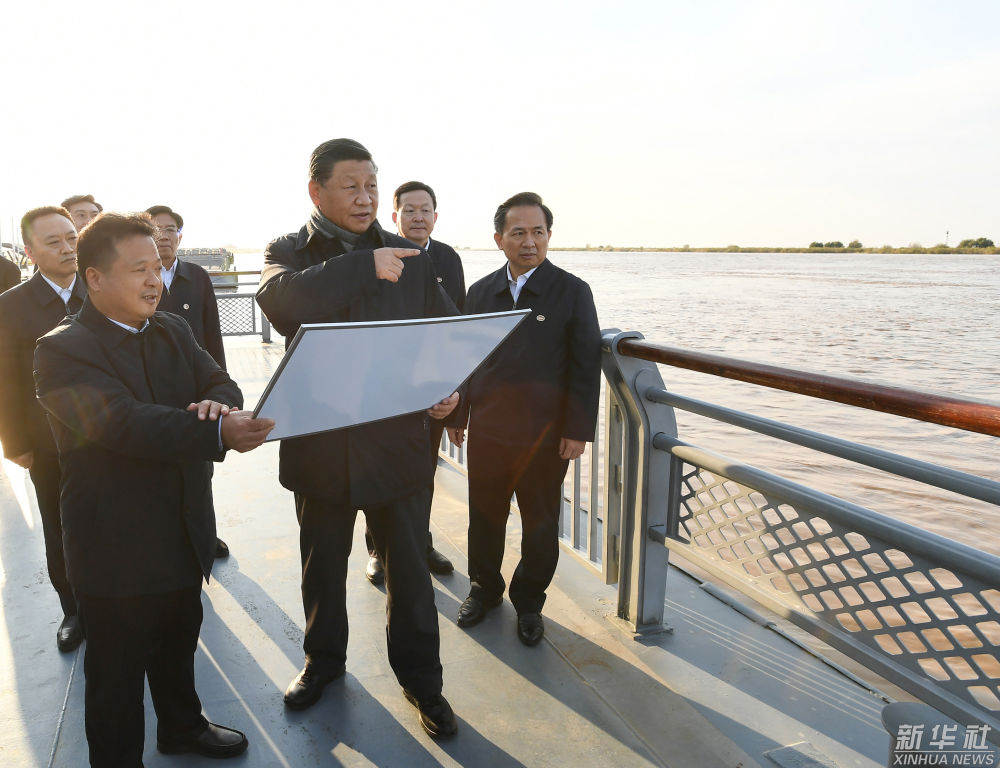 ↑2021年10月22日下午,习近平在山东省济南市主持召开深入推动黄河流域生态保护和高质量发展座谈会并发表重要讲话。这是座谈会前,习近平20日下午在东营市黄河入海口考察。