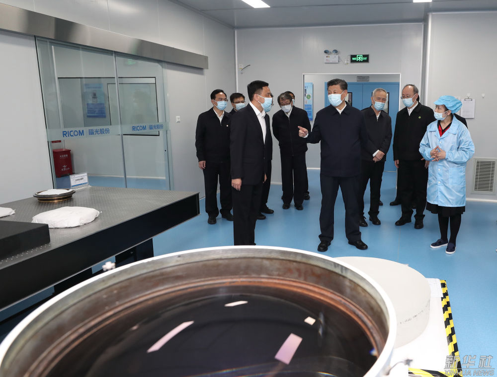 ↑2021年3月24日下午,习近平在福州福建福光股份有限公司考察。