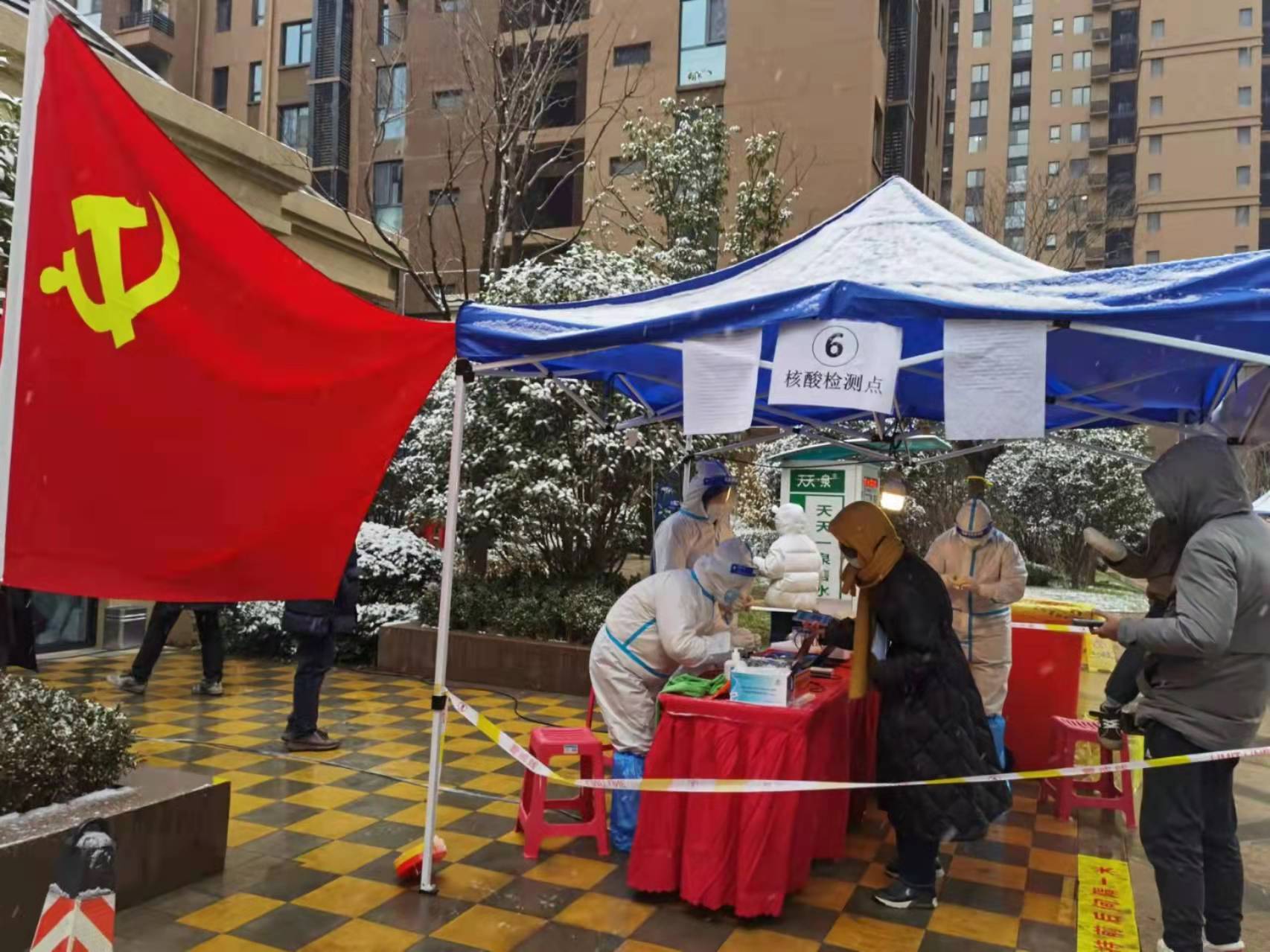因为战士勇敢而坚定,所以必胜!战士勇敢而坚定,是必胜的保证。25日,在西安市全市小区(村)、单位实施封闭式管理后的第三天,一场大雪席卷古城西安,气温较前一日骤降8℃。而在街头巷尾,数以万计的医护人员、社区工作者和志愿者仍坚守在一线岗位,在风雪中筑起了牢固的抗疫防线。“今天检测量比较大,但是我们都很有信心,一定能如期完成所有检测任务。”路面积雪后,医务人员穿上鞋套鞋底十分光滑,每走一步都需格外小心;医务人员每做完一次核酸采样后都要进行手消毒,在强降温的天气下手指很快就冻得没了知觉,但他们毫无怨言;严肃的“大白”,结冰的防护面罩;等等。大风刮不倒战士的身躯,大雪压不垮勇士的脊梁。风雪中的一线坚守,就是战“疫”必胜的灯塔。