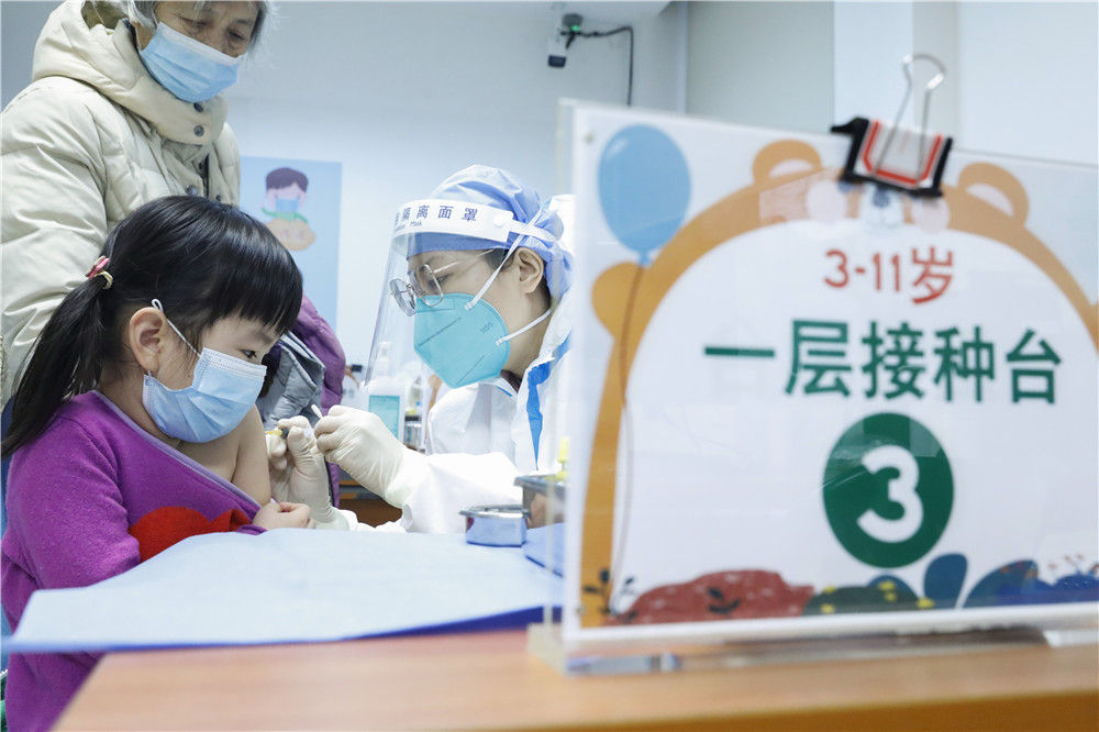 家长带着孩子在北京新街口街道新冠疫苗接种点接种疫苗(12月9日摄)。新华社记者 张玉薇 摄
