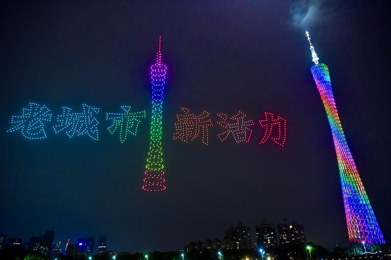 10月23日晚,广州举行“老城市 新活力”无人机专题表演,1000架无人机自海心沙腾空,夜空写答卷,光影颂光辉,绘出千年商都奋力实现“老城市 新活力”的三年“赶考路”。