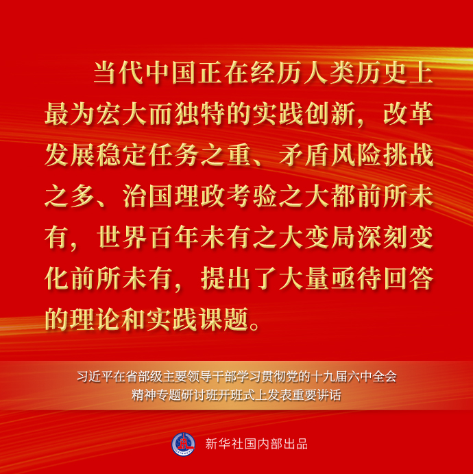 习近平在省部级主要领导干部学习贯彻党的十九届六中全会精神专题研讨班开班式上重要讲话金句