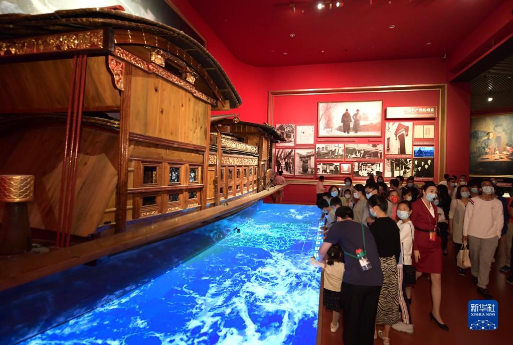 观众在中国共产党历史展览馆参观(2021年10月1日摄)。新华社记者 李贺 摄