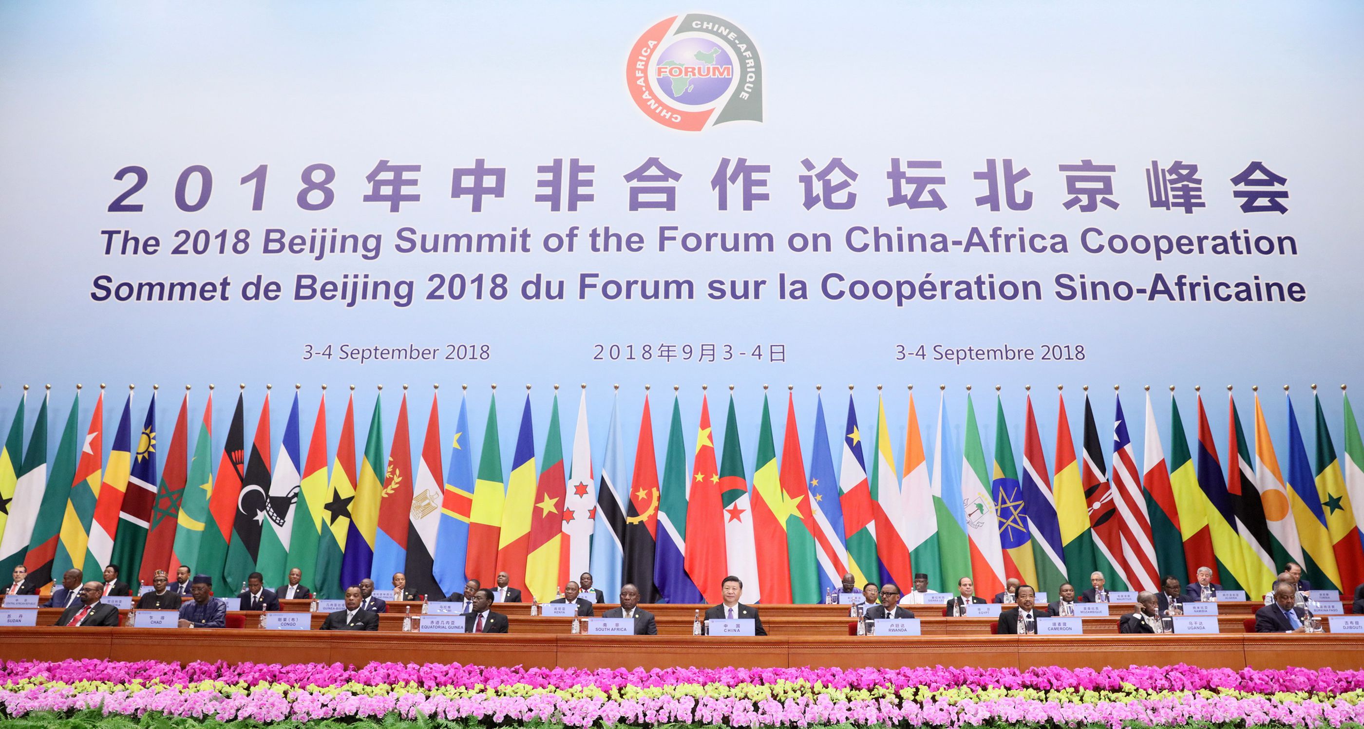 2018年9月3日,中非合作论坛北京峰会在人民大会堂隆重开幕。中国国家主席习近平出席开幕式并发表题为《携手共命运 同心促发展》的主旨讲话。新华社记者 刘卫兵 摄