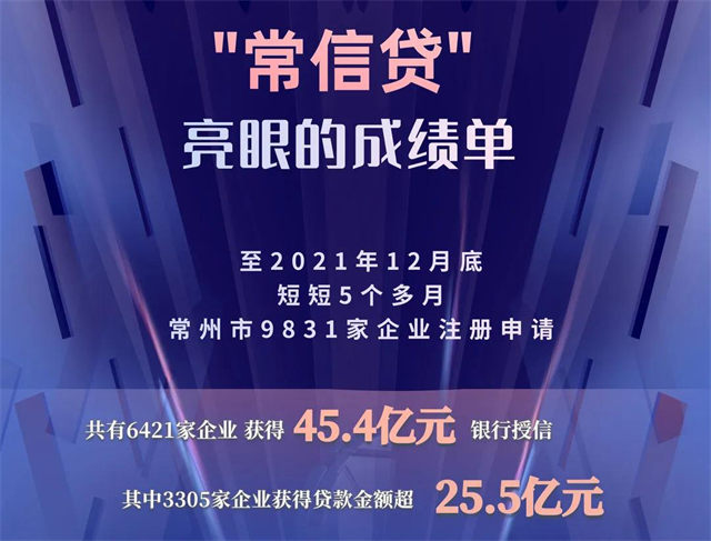 2021年下半年,选取6家银行开展常州市小微企业“常信贷”业务试点,通过为小微企业精准画像,为银行精准筛选企业名单,精准把控小微企业经营风险及信贷风险,构建起“敢贷、愿贷、能贷、会贷”长效机制,并交出了一份亮眼的成绩单。