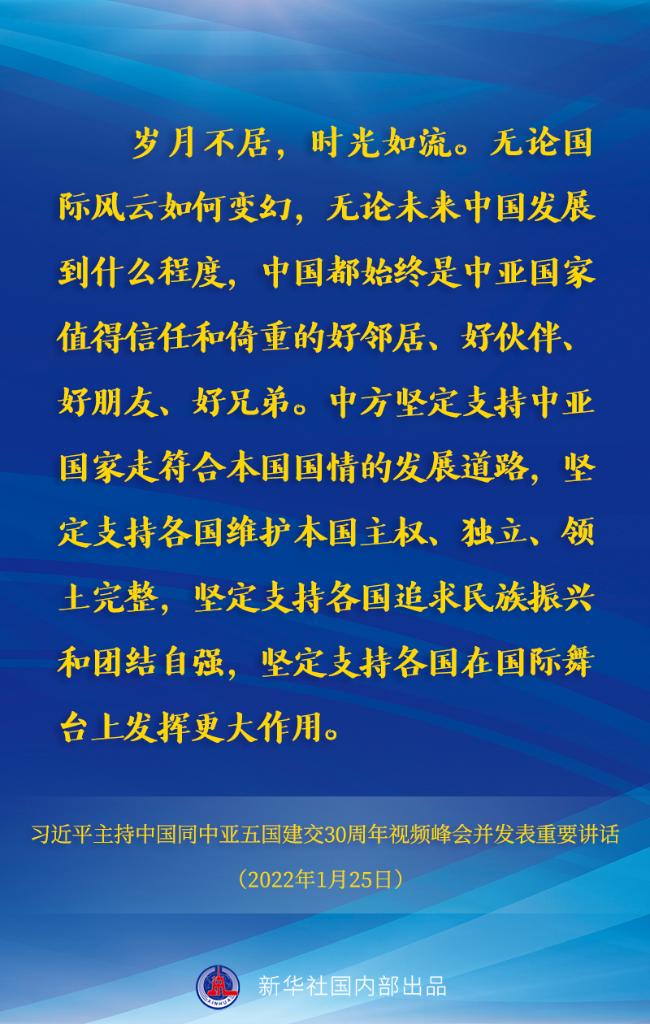 要点速览丨习近平主持中国同中亚五国建交30周年视频峰会并发表重要讲话 编辑:高方勇 来源:新华网 浏览次数: 次 发布时间:2022-01-26 14:41:28 【字体:小 大】 1月25日下午,国家主席习近平在北京主持中国同中亚五国建交30周年视频峰会并发表重要讲话。一起看要点。 扫一扫在手机打开当前页 【打印正文】 相关信息 上一篇:学习关键词丨冰雪为媒 共赴冬奥之约 [ 2022-01-26 ] 下一篇:冰雪之约丨“冬奥列车”快乐出发啦 [ 2022-01-26 ]