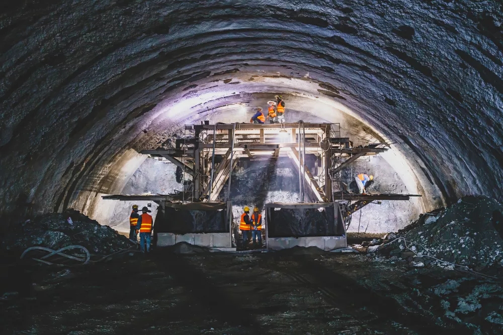工人在国家重点项目大广高速扩容项目(南康至龙南段)C7标段现场龙南西隧道施工作业。