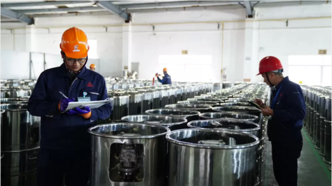 会昌氟盐新材料产业基地江西石磊氟材料有限公司,工人在加紧生产。