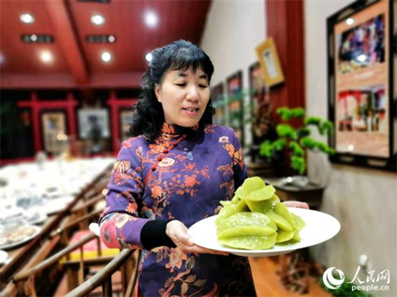寿山石雕刻家叶秦展示自己创作的“满汉全席”。人民网 林晓丽摄“剖之斑璘具五色,他山之石皆卑凡。”三坊七巷“百宴轩”店主、寿山石雕刻家叶秦介绍,寿山石雕起于福州,兴于福州,早已成为福州的一张文化“名片”。