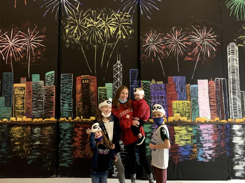 亚当·福斯特的子女在美国犹他州庆祝春节。美国海伦·福斯特·斯诺基金会供图