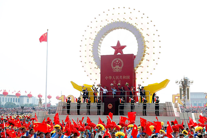 2018年3月17日,十三届全国人大一次会议在北京人民大会堂举行第五次全体会议。这是习近平进行宪法宣誓。