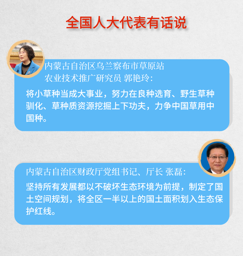 5年来,内蒙古落实习近平总书记的重要指示,不断补齐短板,着力解决发展不平衡不充分问题,走出一条欠发达地区发展新路。会上,代表们以生动案例和具体数据反映近年来内蒙古坚定不移走以生态优先、绿色发展为导向的高质量发展新路子。