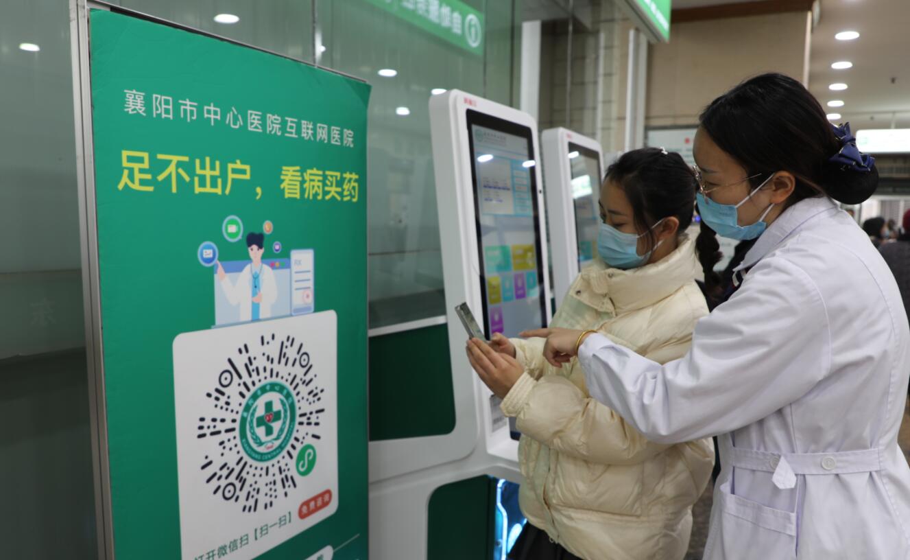 襄阳市中心医院,医护人员指导患者手机预约挂号。 湖北日报全媒记者 袁超一 通讯员 姚敏 朱月皎