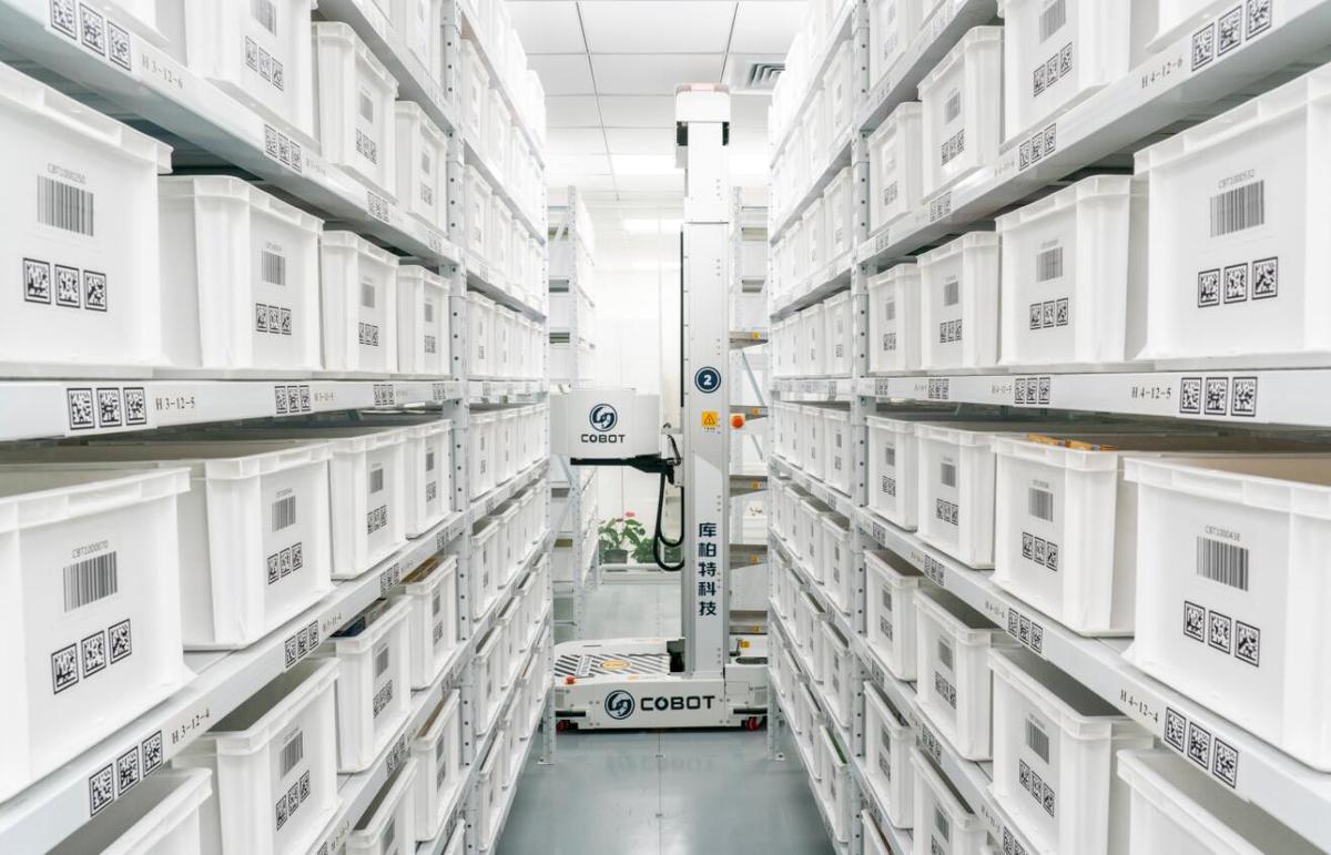 武汉协和医院金银湖院区门诊的药房,智能机器人正在为药房补药。湖北日报全媒记者 魏铼 摄
