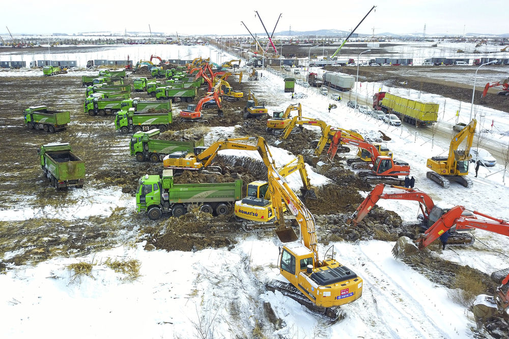 硕大的雪片纷纷扬扬洒落,位于吉林市高新区的隔离方舱施工现场泥泞不堪。