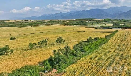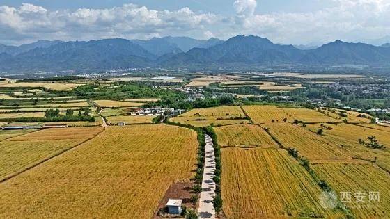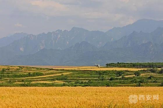 风一吹,麦浪滚滚,让人心旷神怡,这是属于北方独有的“诗与远方”。每年秋收时节,连绵不绝的金色麦田,与错落有致的秦岭相互映衬着,仿佛铺成了一幅巨大的金色油画。不时还会有阵阵微风吹过,麦穗随着风儿轻轻地摇摆、起伏着,构成了一圈一圈的波浪。