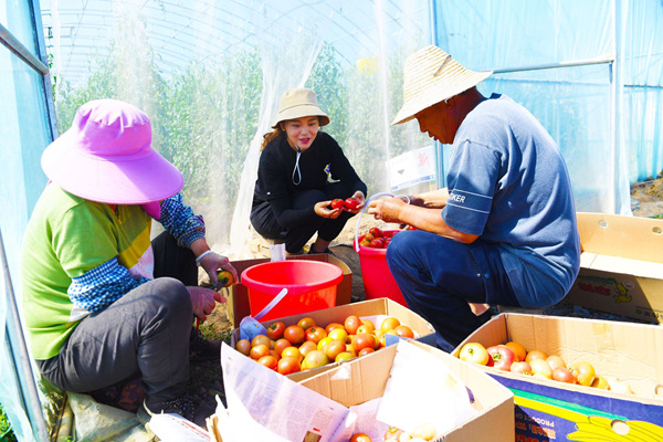 中国农业大学学生吴林静和西槐庄村村民正在收获番茄。党维婷摄“去年一开始,学校老师买了十几箱,后来我们又跑到与农大有合作的院校去摆摊,有人买过几次就会问,你们种的西红柿怎么这么好吃?”吴林静说,现在还不定期到市里的一些街道去摆摊。