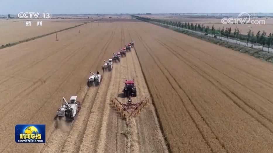 央视网消息(新闻联播):习近平总书记强调,保障好初级产品供给是一个重大战略性问题,中国人的饭碗任何时候都要牢牢端在自己手中,饭碗主要装中国粮。党的十八大以来,在以习近平同志为核心的党中央坚强领导下,我国把提高农业综合生产能力放在更加突出的位置,持续推进“藏粮于地、藏粮于技”。眼下,正在夏粮主产区推进的麦收农业科技水平提升、生产方式转变、综合产能提高的成效凸显。