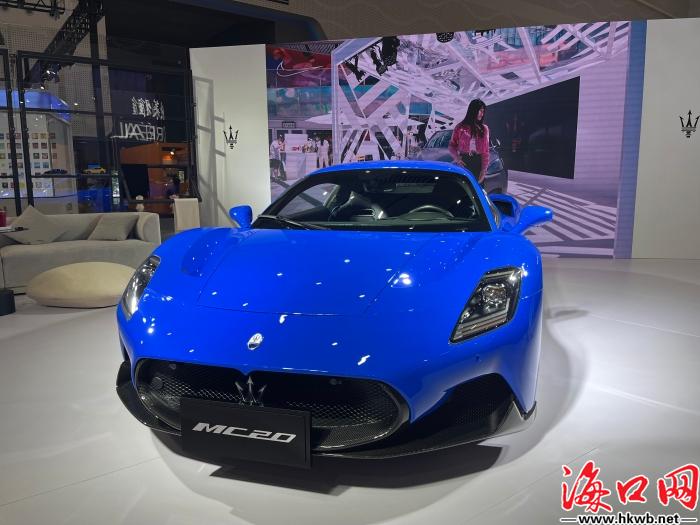 消博会5号展馆内,一蓝一白两辆超级跑车惹人眼球,均为首次参加消博会。其中,蓝色跑车为玛莎拉蒂超跑MC20,是一款100%意大利制造的超级跑车,将行业顶尖科技与机械艺术凝练于一身;白色为法拉利最新款硬顶跑车Roma,集精致造型设计、澎湃动力性能以及敏捷灵活的操控表现于一体,融合了设计美学与前沿科技,展现出标志性的意式设计风格。