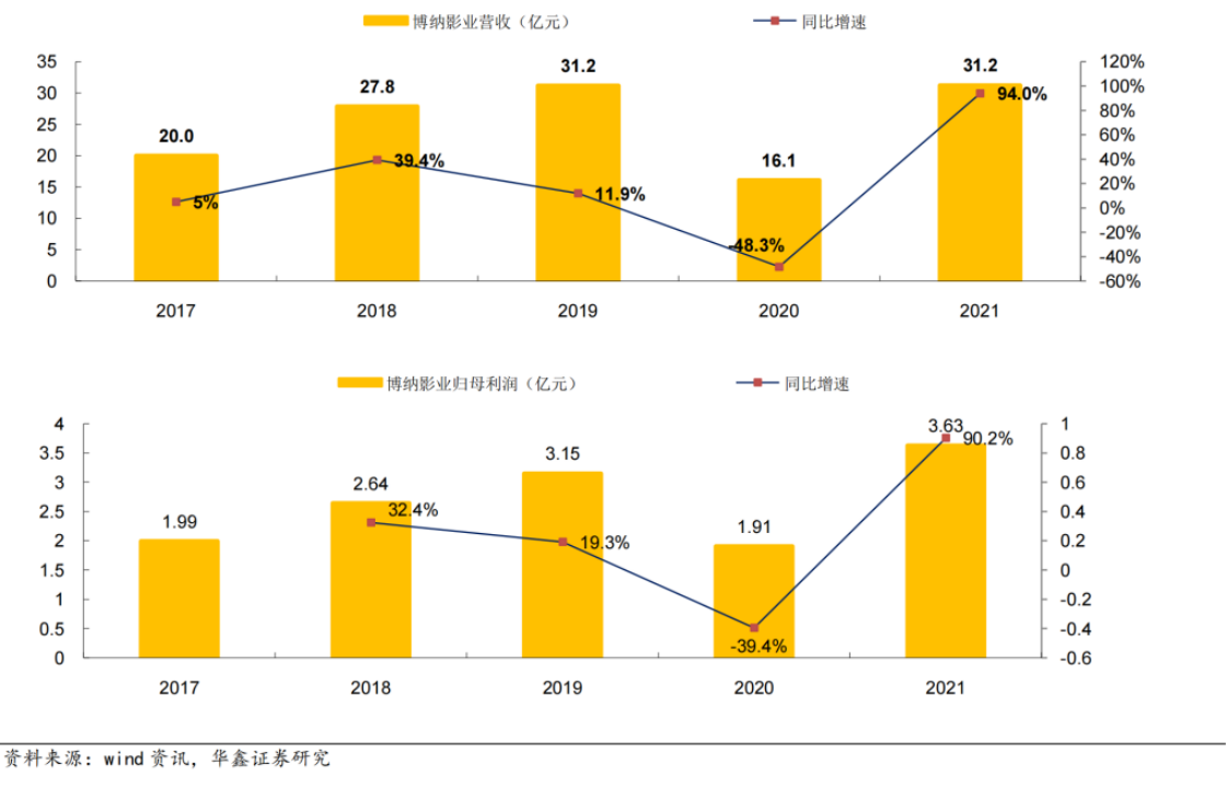 博纳成立于2003年,是国内首家从事电影发行业务的民营企业。博纳深耕电影行业多年,2007年凭借发行优势切入电影投资业务,后又以投资业务反哺发行业务。2019年,博纳取得了《关于加快电影院建设促进电影市场繁荣发展的意见》出台后的第一张电影院线牌照。至此,博纳覆盖了电影全产业链,电影投资、发行、院线及影院业务相互促进,并不断向产业链上下游延伸。