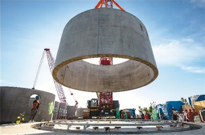 日前,安徽省亳州市谯城区160米风力发电机组混塔开始吊装。该项目共计20台,每台装机容量5兆瓦,建成后将助力改善生态环境,减少碳排放,推动地方经济发展。图为在谯城区双沟镇周大村,施工人员吊装风力发电机组混塔。