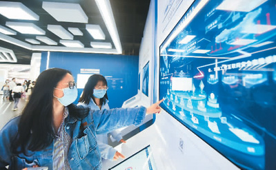 市民在位于浙江省杭州市萧山区的长三角(杭州)制造业数字化能力中心体验工业云安全。