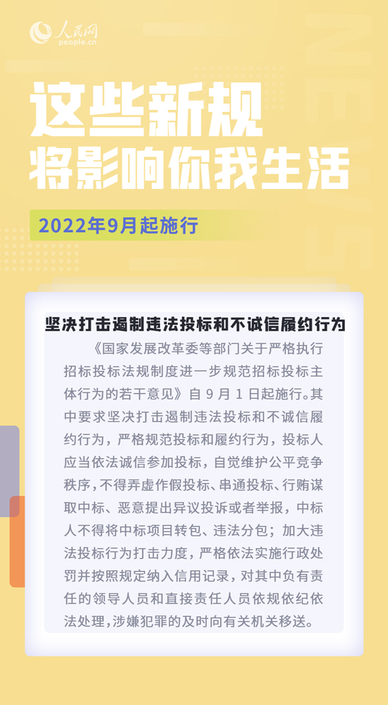 明确哪些情形需要申报数据出境安全评估;规定中小学校不得擅自扩大收费范围、提高收费标准;打击遏制违法投标和不诚信履约行为……9月,这些新规施行,将影响你我生活。