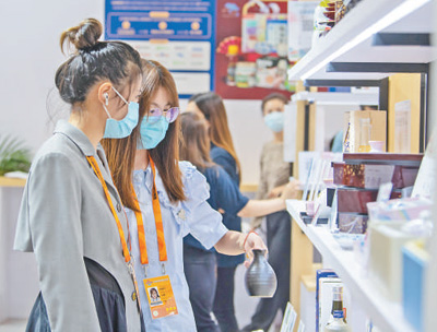 参观者正在选购商品。