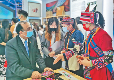 参观者在国家会议中心展区参观。