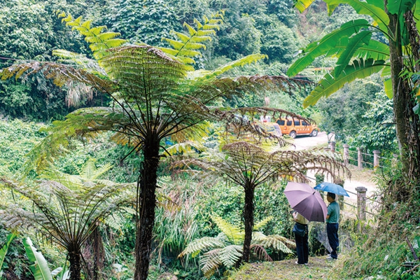 较大棵的桫椤有三四米高,冠幅宛如巨伞。
