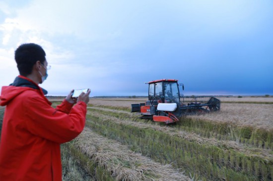 “手机就是咱的‘新农机’。”张良宝说。他不断扩大无人农机使用范围,从插秧到收割,全程都有无人农机参与。