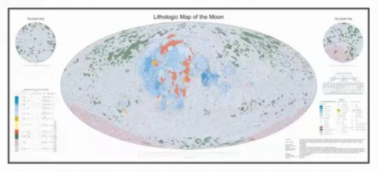 比例尺为1:250万月球全月岩石类型分布图英文版缩略图。(山东大学供图)