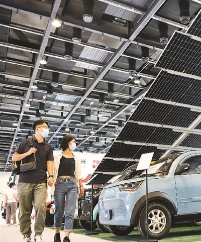 九月三日,在二〇二二年中国国际服务贸易交易会上,观众参观太阳能车。