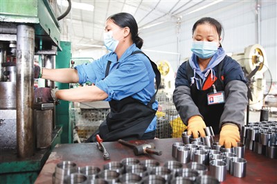 在湖南省通道侗族自治县黄家堡生态工业集中区怀化弘瑞汽配加工生产车间,工人正在进行作业。该公司是一家专业从事汽车离合器、轴承、衬套、夹紧块研发、组装及销售为主的制造型企业,产品全部出口,销往欧美、中东、东南亚等地。