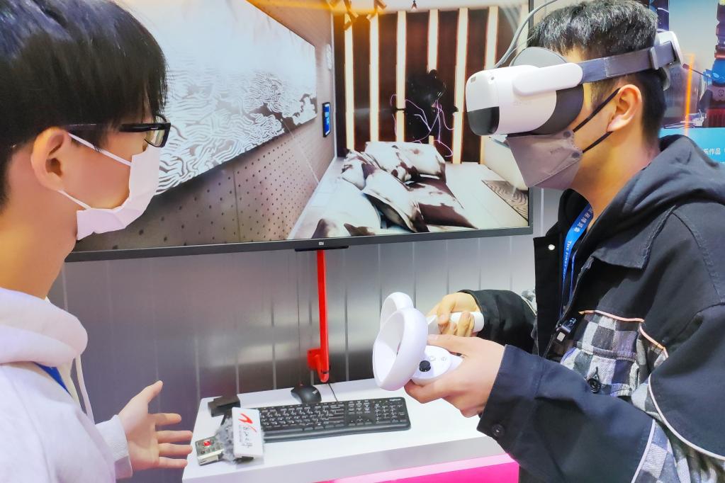 从生产到生活,数字化平台、数字技术正创造出新场景、新应用,丰富每一名消费者的生活。在阿里巴巴展区,穿戴上VR设备,参观者随即进入3D世界,体验逛街购物、户外露营,甚至可以参加一场新品发布会。在3D场景里,消费者能通过AR投射预览商品摆放在真实场景里的效果,全角度查看商品细节;点击按钮进入“任意门”,可抵达森林海滩等场景。