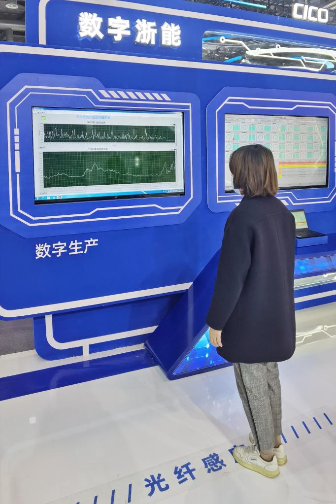 这模拟的是天然气管道网光纤震动预警系统。展台工作人员郑哲欧介绍,当管道周边出现由于机械作业或是自然灾害等情况带来的不明原因扰动时,这套预警系统能够及时感知并实现智能预警,同时提示出现扰动的具体位置,运营企业可以及时派无人机探查或是人工前往处理,防止管道的外破事故发生。