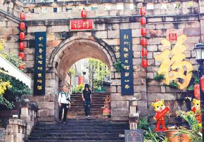 重庆市南岸区近年来因地制宜对城市老街进行改造升级。图为游客在该区龙门浩老街游览。
