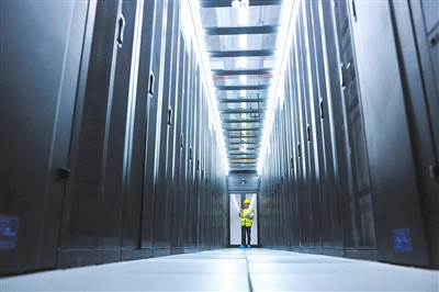 近日,在贵州省贵阳市,工作人员在中国移动贵阳数据中心机房内巡检。