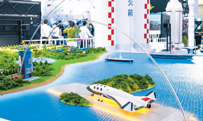 第十四届中国航展的商业航天多媒体沙盘上,展示了包括固体火箭海基和陆基发射、亚轨道太空旅游等在内的商业宇航前沿规划。