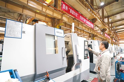 辽宁省沈阳市是东北重要的先进装备制造业基地。近来,沈阳市的先进装备制造业企业开足马力保生产,生产车间里一派繁忙景象。图为通用技术集团沈阳机床的工人在车间工作。