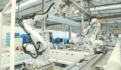 浙江省杭州市临平区经开区一座“黑灯工厂”,智能机械臂正忙着工作。