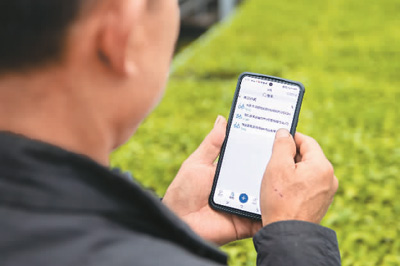 春耕备耕时节,湖南省常德市鼎城区国家现代农业产业园运用现代信息技术,对传统农业生产进行数字化改造。图为在产业园一处蔬菜育苗基地,工作人员使用手机控制大棚内温度、湿度。